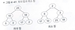 - 최소 힙: 부모 노드의 값이 자식 노드의 값보다 작거나 같은 완전 이진 트리