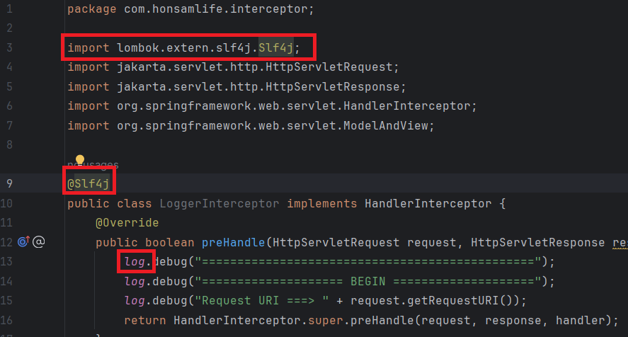 자동으로 private static final Logger log = LoggerFactory.getLogger(MyClass.class); 코드를 넣어준다고 한다.